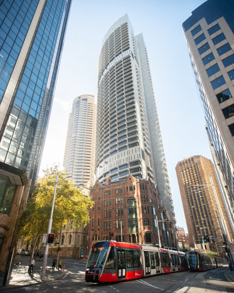 Seidler was briefed to create a single 44-storey tower with an unusually large floor plate and responded by designing not only an architectural masterpiece with two convex ‘camera lenses’ focused on breathtaking views of Sydney Harbour, but a flexible working destination. The flexible, column-free workspaces are amongst Sydney’s largest and the building houses up to 5,000 people.
